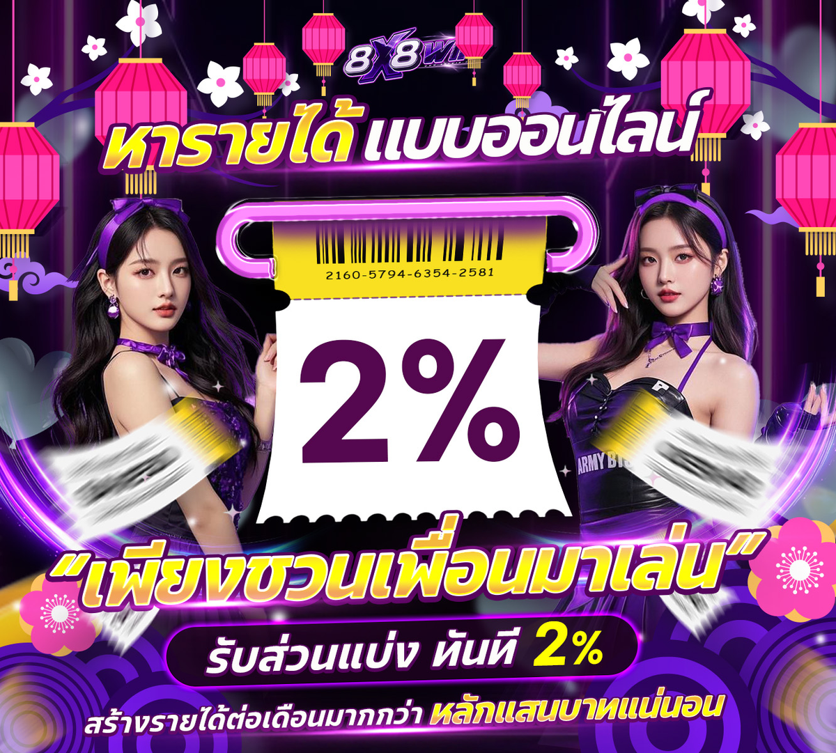 ชวนเพื่อนมาเล่นกับ 8X8WIN รับส่วนแบ่งทันที 2%